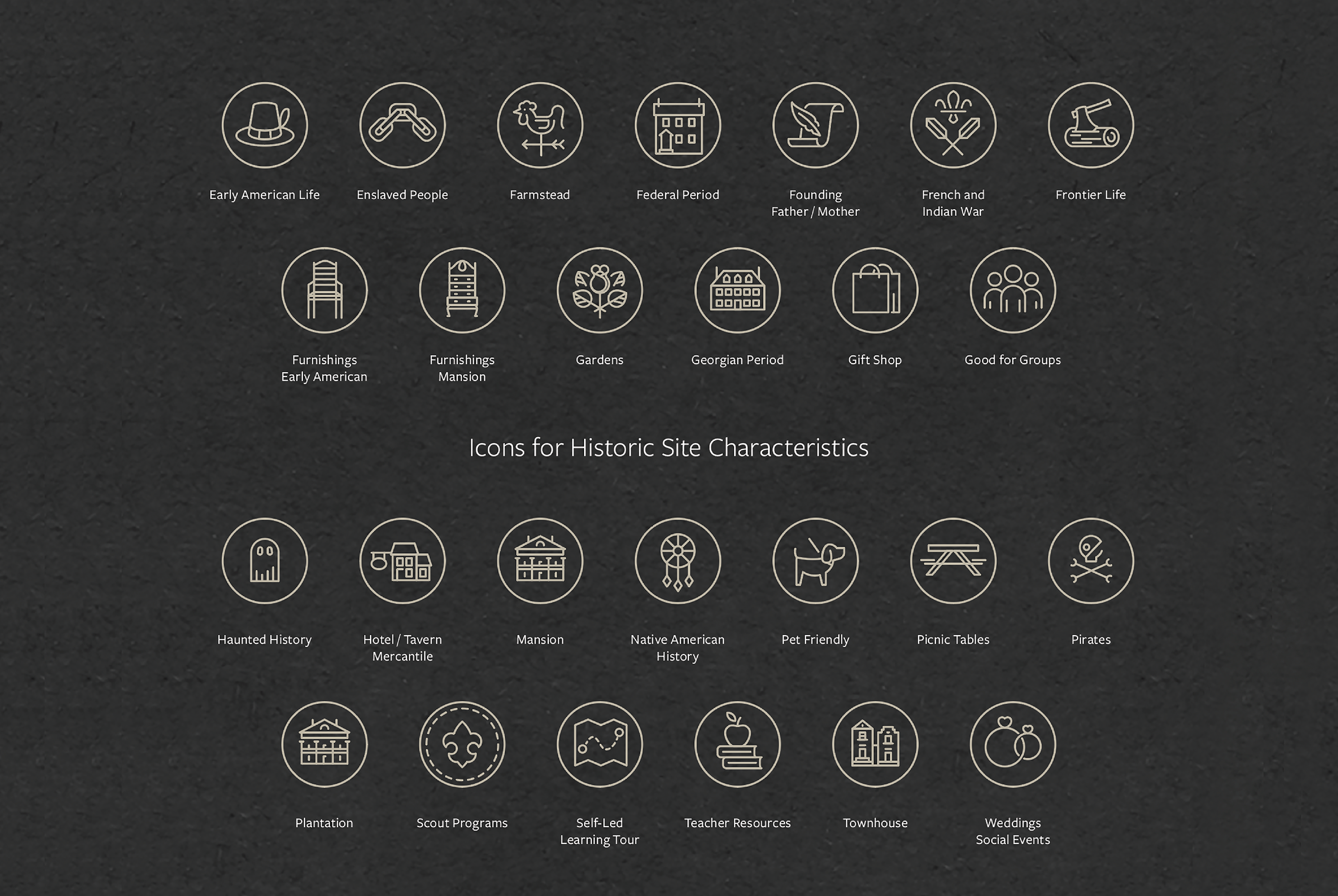 Bespoke brand icons aid in understanding story cornerstones for historic house museum