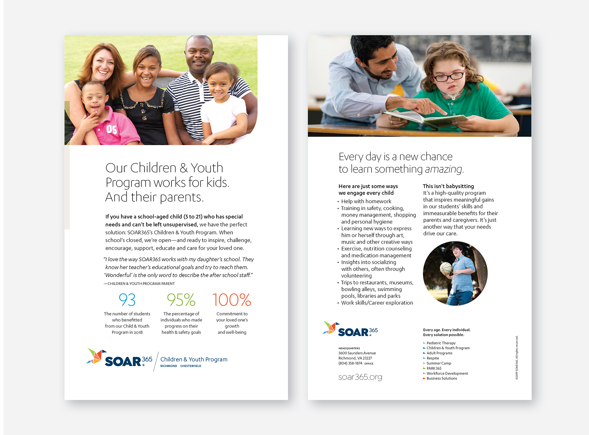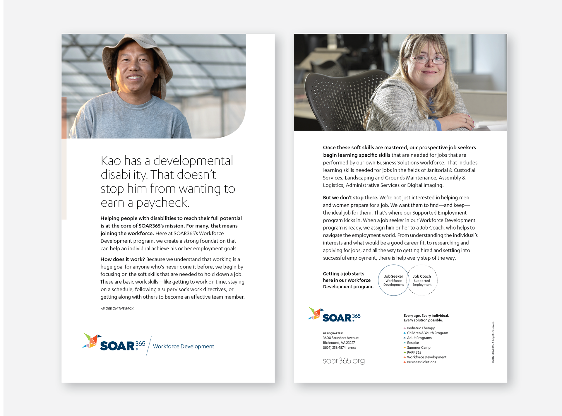 SOAR365 helps individuals with disabilities reach their true and full potential. They address real world problems with real world solutions that provide every individual—and his or her family—with the services that best fit their needs, desires and abilities. Today they have a profound impact on the lives of over 1300 individuals, including meaningful employment opportunities for more than 200 individuals with disabilities.